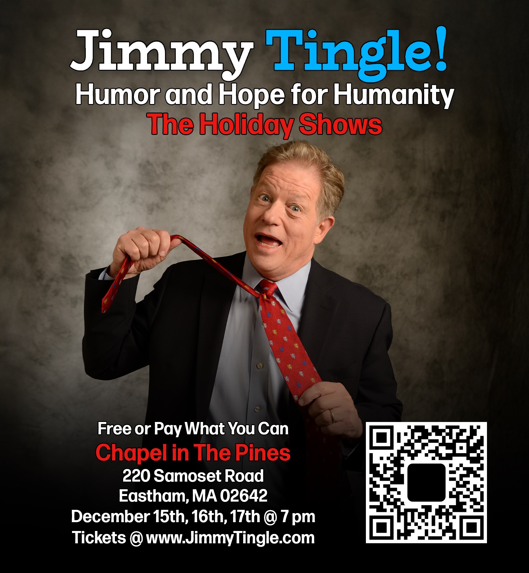 Jimmy Tingle: Humor and Hope for Humanity - The Holiday Shows A comedic journey from street performing to Theatre, Television, Harvard, a run for office and up to the present 2025 moment. Very funny! |